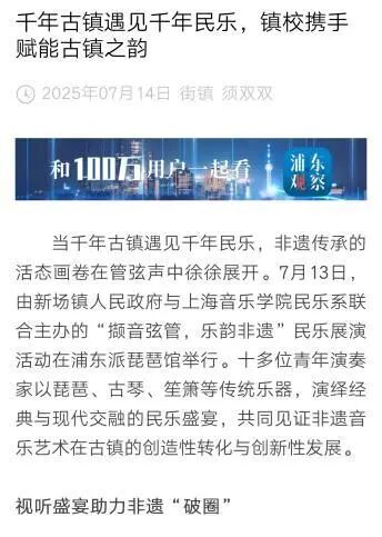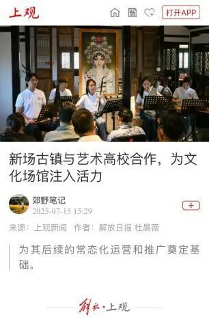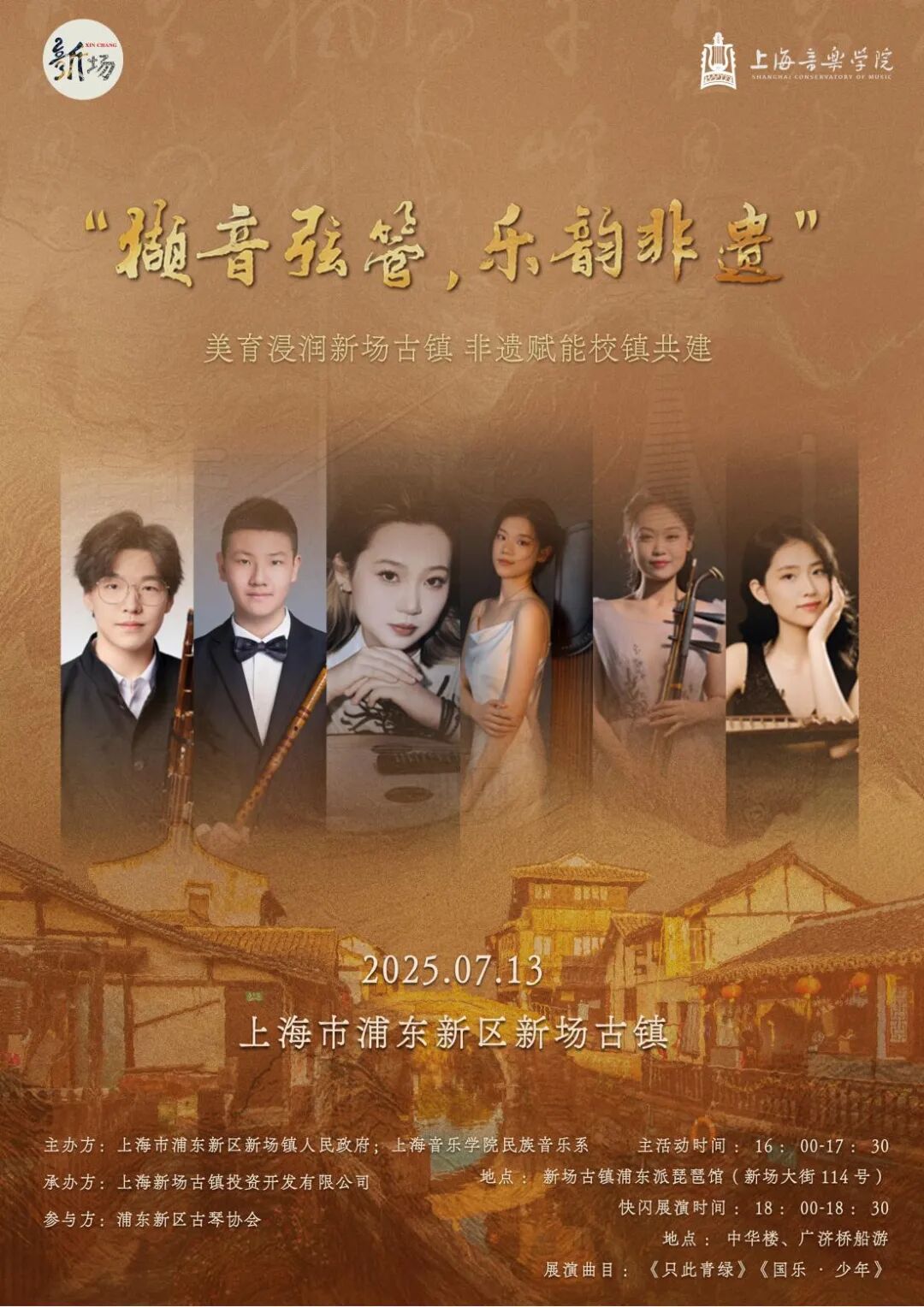 上海音乐学院民族音乐系开启“撷音弦管,乐韵非遗”暑期社会实践活动。实践团由民族音乐系党总支副书记高木梓带队,前往上海松江区泗泾古镇、浦东新区新场古镇及奉贤区青村古镇,探寻“十锦细锣鼓”“琵琶艺术(浦东派)”“江南・孙氏二胡”三项国家级非物质文化遗产项目。