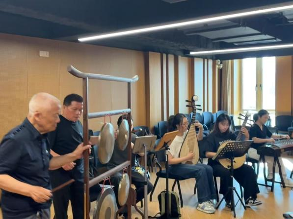 国家级非物质文化遗产“十锦细锣鼓”传承人与民乐系同学交流合作