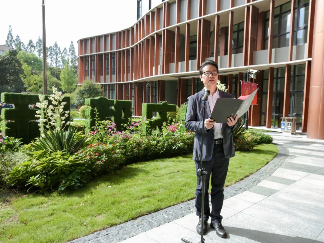 在庄严的国旗下,教师代表周湘林教授首先发言。他从爱国情怀、上音传承、时代召唤三个方面,阐述了音乐工作者永恒的精神底色、红色基因与艺术理想的交融,以及作曲指挥系学子的责任与荣光,鼓励师生继承和发扬上音优良传统,以前辈大师为榜样,将爱国情、强国志、报国行自觉融入专业学习和艺术实践,既要胸怀家国理想,也要保持对专业的热爱,在矢志奋斗中谱写新时代的青春之歌!