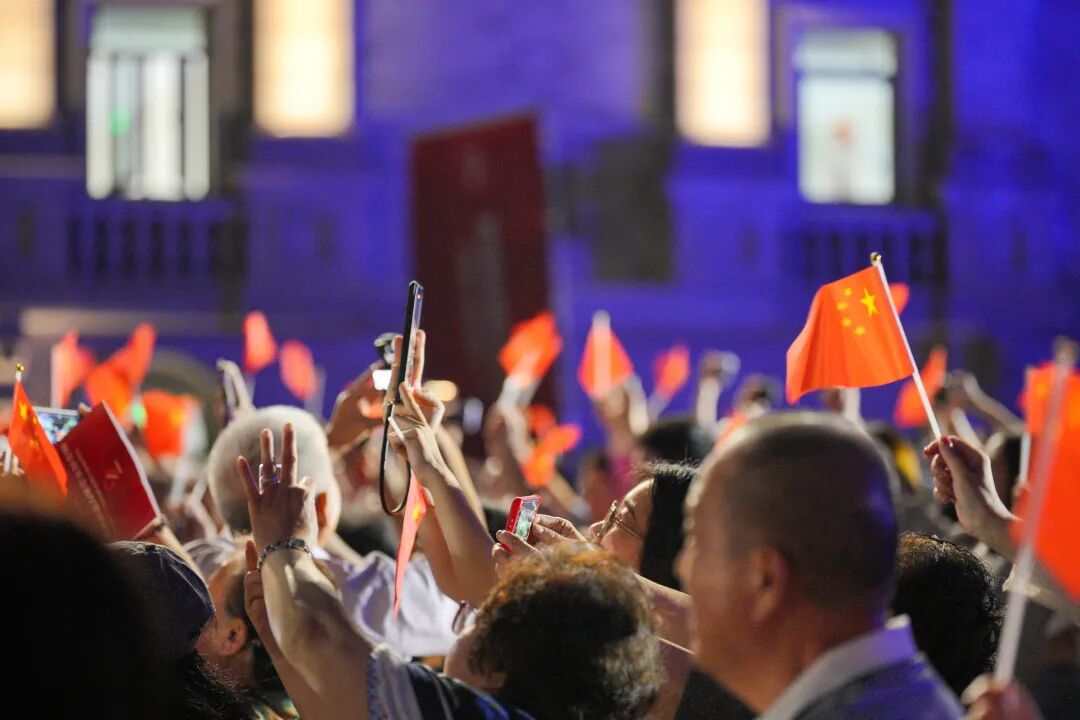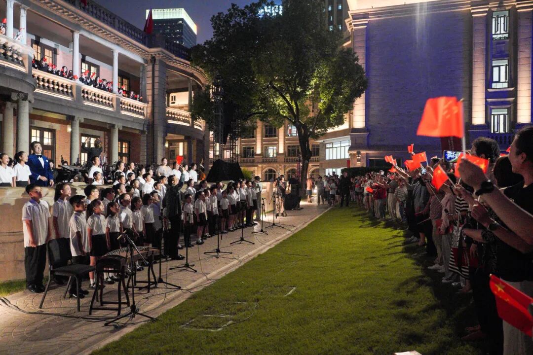 上音于2024年元旦正式面向社会公众开放。一年多以来,上音校园开放不断升级,先后举办多个主题展览、蔡元培美育大讲堂、草坪音乐会等,建设可阅读、可聆听、可感知的沉浸式开放校园,将优质艺术资源向全社会辐射,将校园文化与城市公共生活相融,助力城市文化建设,打造习近平文化思想最佳实践地。国庆期间,上音开放空间将持续供市民预约参观,并将在多处进行快闪演出。当音乐会压轴曲目《歌唱祖国》的旋律响起,现场观众在院长廖昌永的带领下,一边挥舞红旗一边齐声合唱,歌声汇聚成一股温暖而磅礴的洪流,将每一个个体与伟大的祖国紧密相连。
