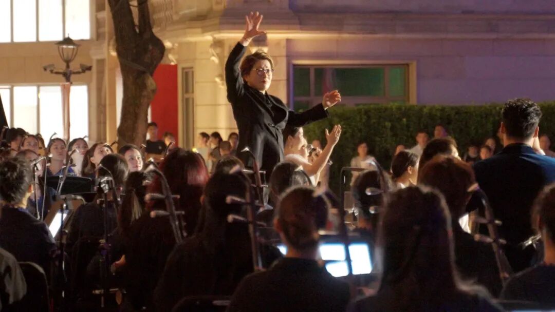 今天,上海音乐学院在汾阳路校区城市音乐会客厅前草坪,为广大市民和音乐爱好者献上一场“国庆草坪音乐会”。傍晚时分,华灯初上,在秋夜的微风中,音符与百年建筑交织共鸣,为“人民城市”的生动实践,写下华美的注脚。