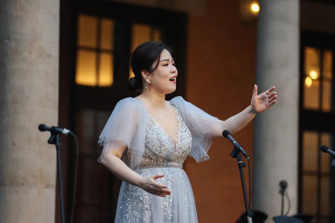 随后,艺术的画卷徐徐展开:男高音冯浩然深情演绎两首风格迥异的作品:中国艺术歌曲《嘉陵江上》与意大利名曲《妈妈》。青年小提琴家林瑞沣带来维尼亚夫斯基华丽精湛的《D大调波兰舞曲》,在钢琴家黄秋宁的默契伴奏下,尽显弦乐之美。从陆在易先生根据诗人艾青名作谱写的《我爱这土地》,到普契尼歌剧《贾尼·斯基基》中的咏叹调《我亲爱的爸爸》,女高音范雪妍的歌声饱含赤诚。