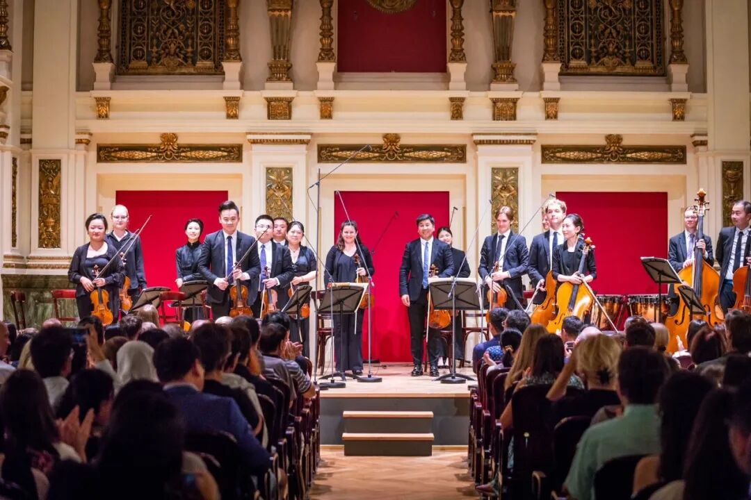 音乐会终章,落在勋伯格早期浪漫主义的宏伟诗篇——《升华之夜》之上。在勋伯格那充满半音化旋律与丰富对位的音乐洪流中,两个群体的弓弦完美交融。声部间的对话,既是音乐内部的呼应,也成为了文化间相互倾听与应答的象征。