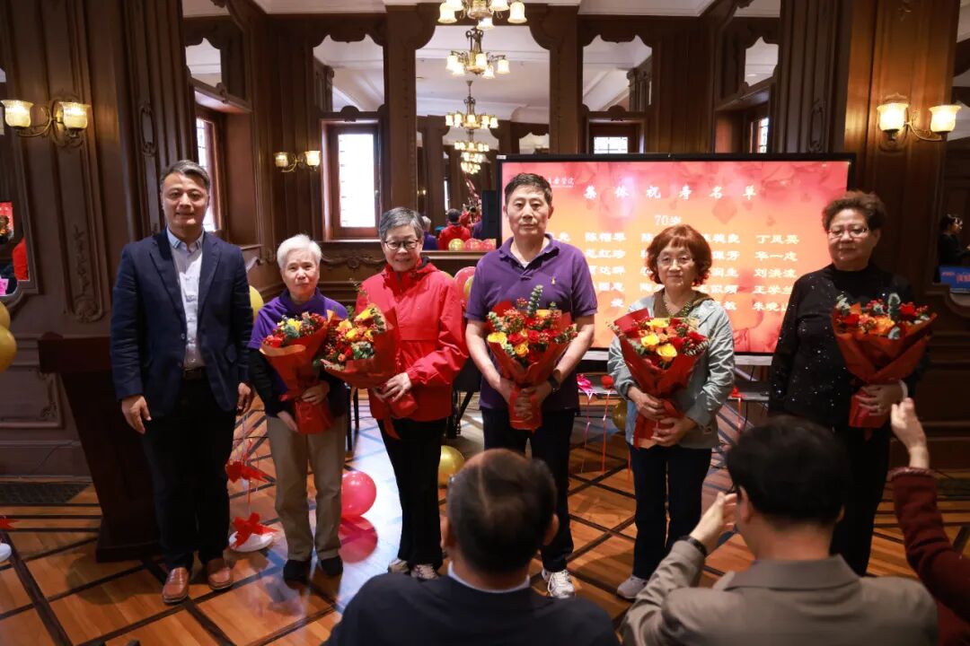 活动为恰逢整岁的离退休教职工举办集体生日会。与会领导向寿星代表献花,与大家共切生日蛋糕,现场温馨氛围浓厚。