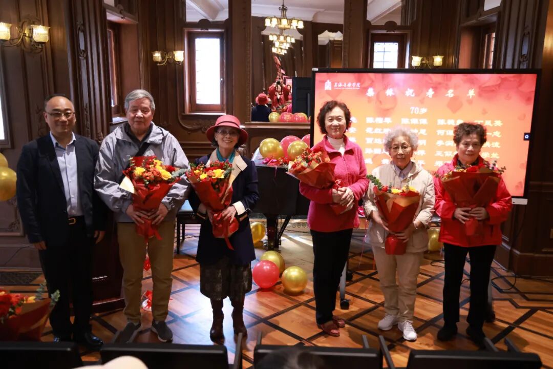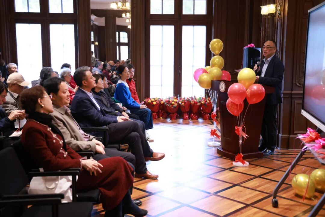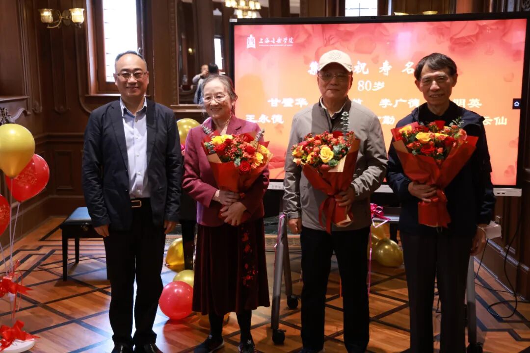 徐卫代表学校党政领导班子及全体师生,向在场老同志送上节日祝福,并向他们为上音建设发展作出的卓越贡献致以诚挚感谢与崇高敬意。他向老同志报告了学校近期在“双一流”建设、人才培养、教学科研等方面取得的成绩,表示院党委始终高度重视离退休工作,未来将进一步做好服务保障,为老同志提供更多元、更优质的活动场所与条件。衷心祝愿各位老同志、老寿星生日快乐、生活愉快,期待大家继续为学校建设发展贡献智慧和力量。