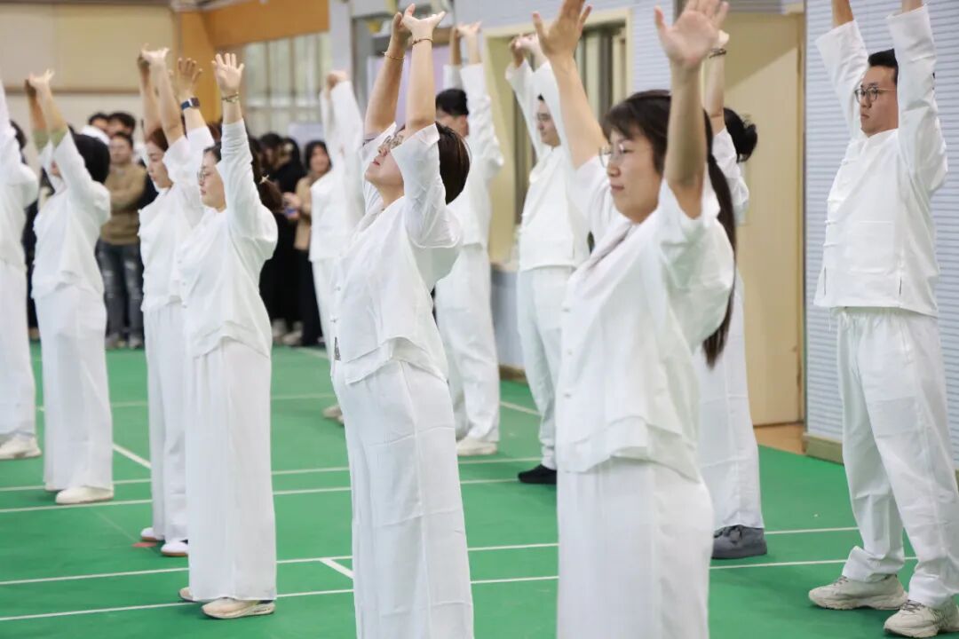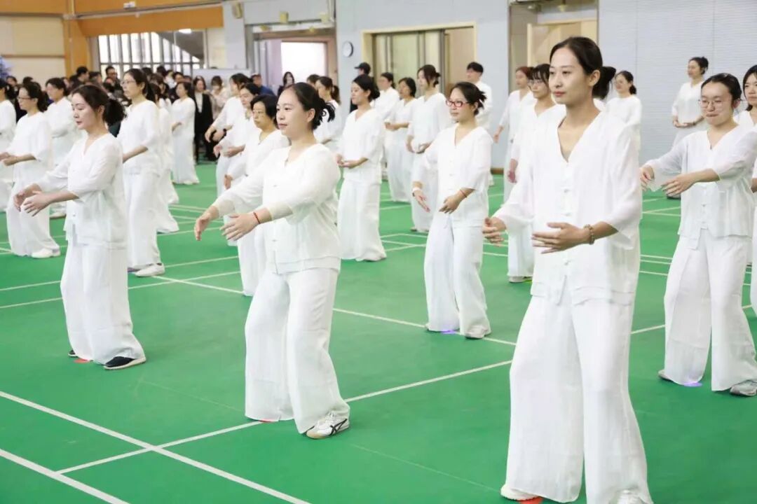 本届运动会的一大亮点,是首次增设教职工八段锦展演项目和学生八段锦比赛项目。在体育组和工会的精心组织下,经过前期认真训练,运动员们在舒缓音乐中动作整齐划一,刚柔并济,既展现了中华传统健身术的独特魅力,也彰显了新时代上音人的健康风采。
