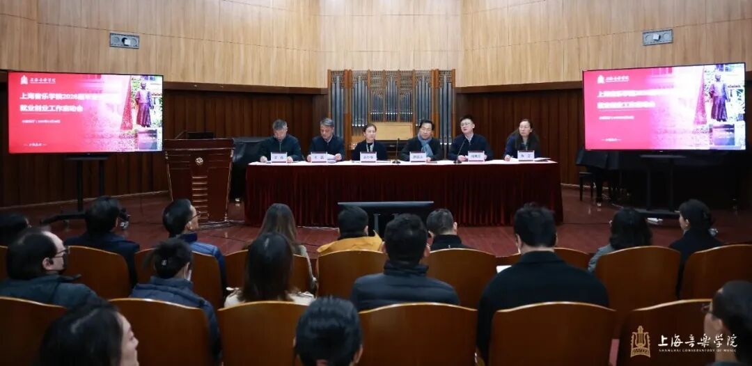 为深入学习贯彻习近平总书记关于就业工作重要指示精神,贯彻落实党的二十届四中全会精神和《关于加快构建普通高等学校毕业生高质量就业服务体系的意见》要求,以需求为导向,重服务、强贡献,推动人才培养质效精准对接国家战略和上海经济社会发展,全面推进毕业生高质量充分就业,上海音乐学院2026届毕业生就业创业工作启动会今天上午在小音乐厅举行。院领导裴小倩、廖昌永、王磊、汤隽杰、冯磊、陈云出席会议。