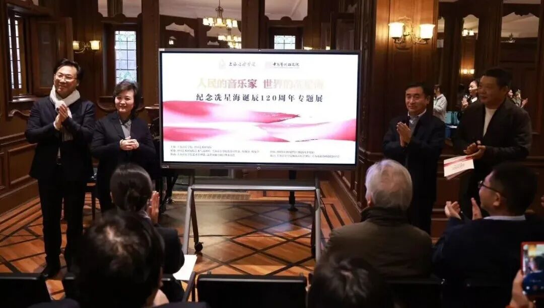 中国音协卢庆华秘书长、上海市文联夏煜静书记、中国艺术研究院郑光旭馆长和上海音乐学院廖昌永院长,一同为“人民的音乐家·世界的冼星海”专题展揭幕!