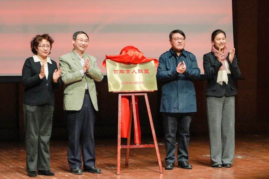 在启动仪式上,李宣海、高德毅、裴小倩、李艳玲共同为“百年育人联盟”揭牌。