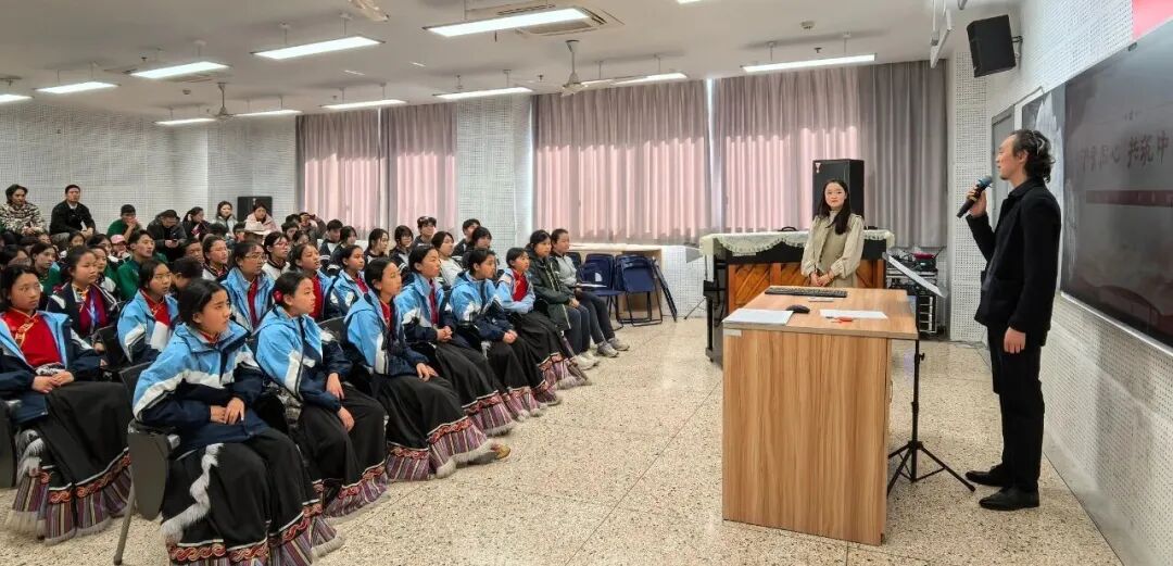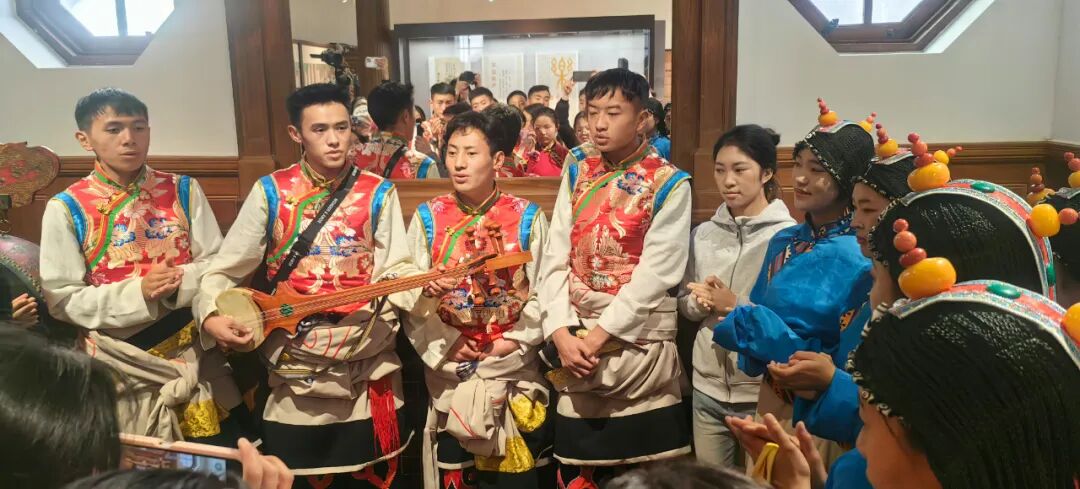 音乐会结束后,上音校领导在上音歌剧院贵宾室与参演师生亲切交流,学生们演唱了精心准备的果洛山歌与青少年原创歌曲,质朴的旋律、真挚的情感传递着来自雪域高原的美好祝福。