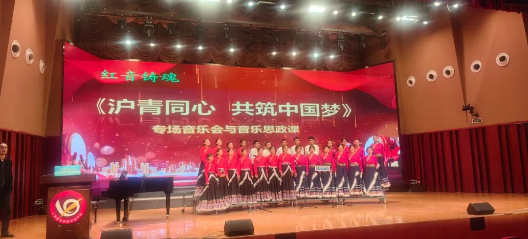 11月27日晚,果洛西宁民族中学的果韵同声合唱团身着民族服饰,登上上海音乐学院建校98周年音乐会舞台,与上海音乐学院合唱团一起,参与由光未然作词、冼星海作曲的大型合唱声乐套曲《黄河大合唱》的演唱,共庆上音建校98周年,赢得现场阵阵掌声。