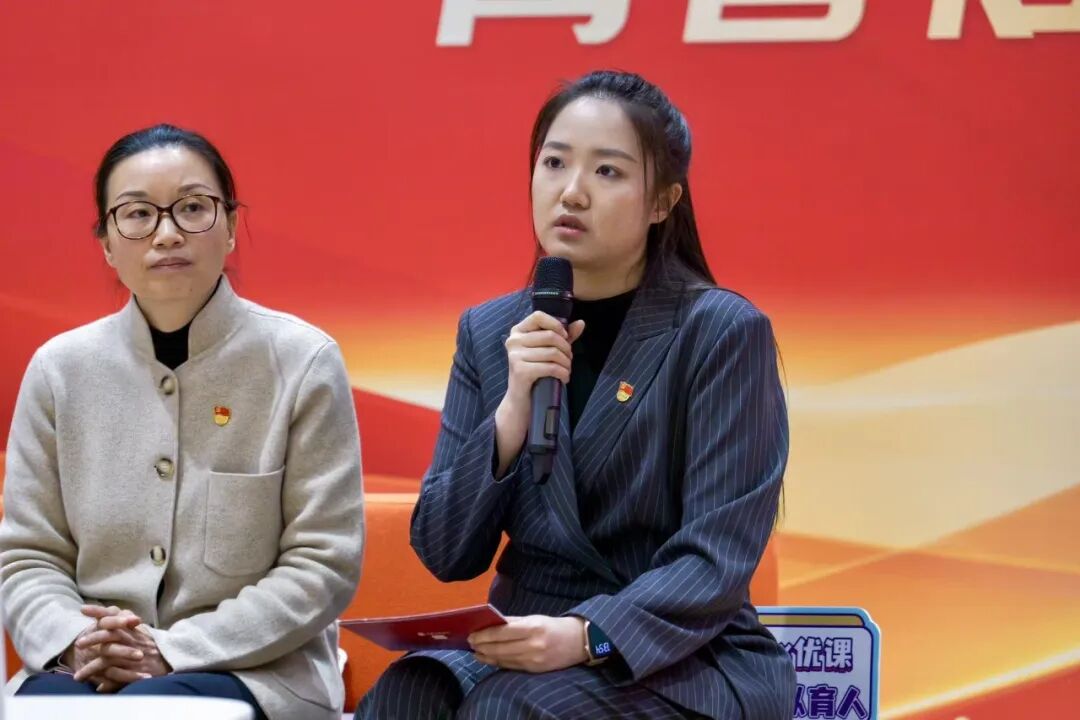 辅导员殷鸣璐分享了在参与团队创作过程中,将引领学生思政教育的第二课堂拓展至党史馆、纪念馆到人民大会堂,在实地走访与沉浸式体验中,为后续创作筑牢思想根基。