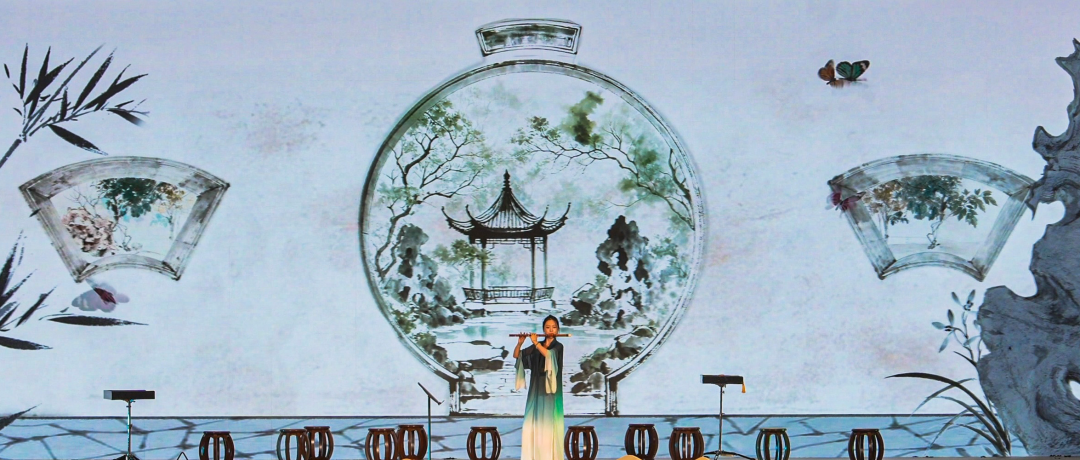 多媒体音乐剧场《南韵·丝竹》延续了上海音乐学院在“教创演研”一体化模式下的实践教学成果。让千年南音的婉转、江南丝竹的韵味与经典红色音乐的激情深度融合。本场演出不仅是对《珊瑚颂》《江山》《在希望的田野上》等经典作品的现代诠释,更是通过现代视听语言将“南音”与“江南丝竹”传统音乐融入当代审美精神,使传统文化得以具象化、立体化呈现,继而唤起观众对红色精神与传统美学的当代共鸣。