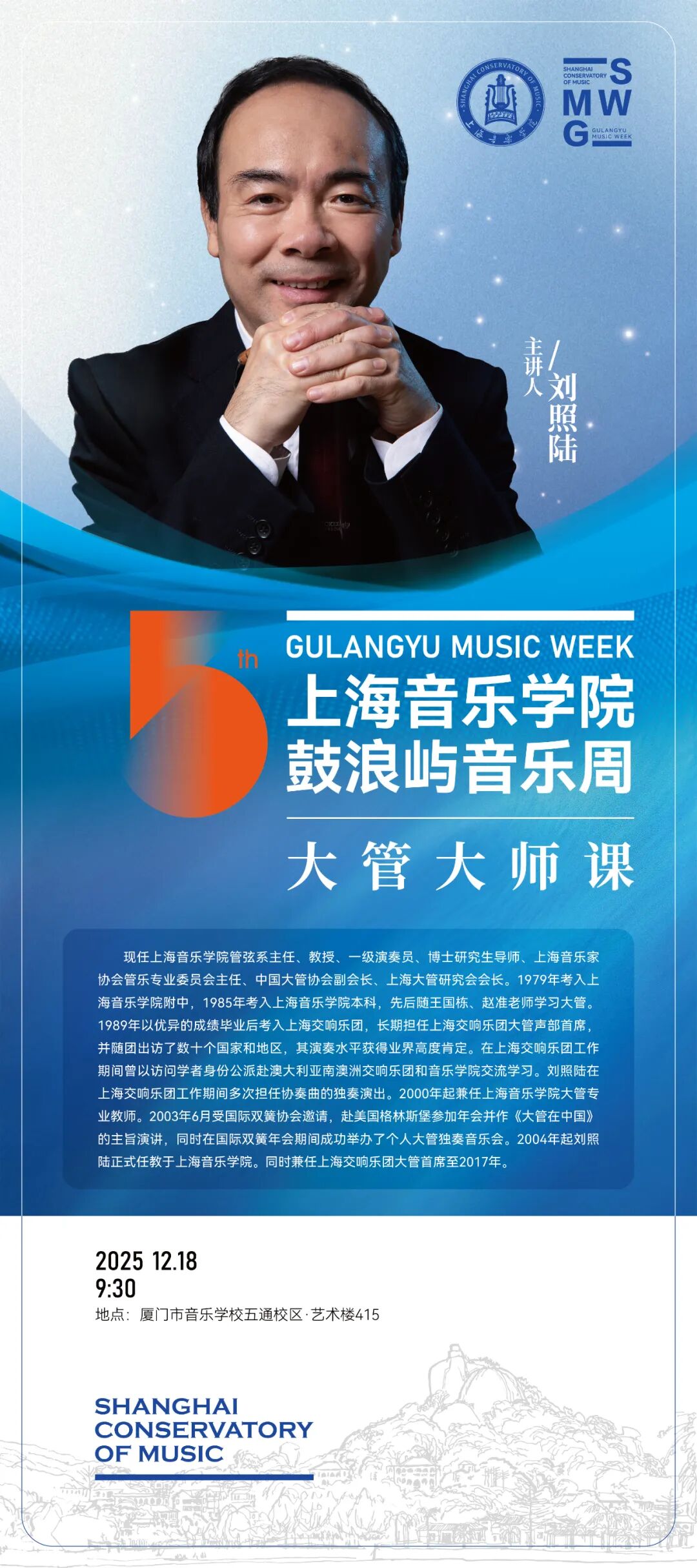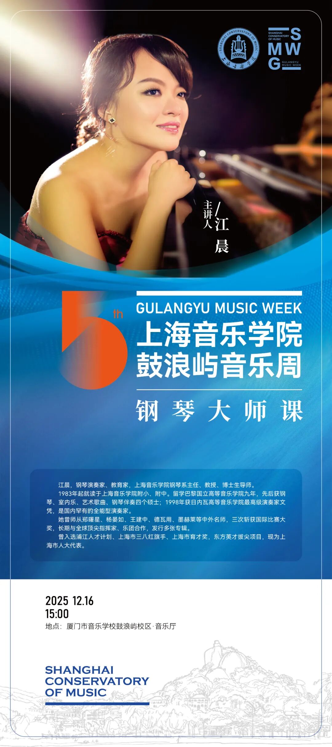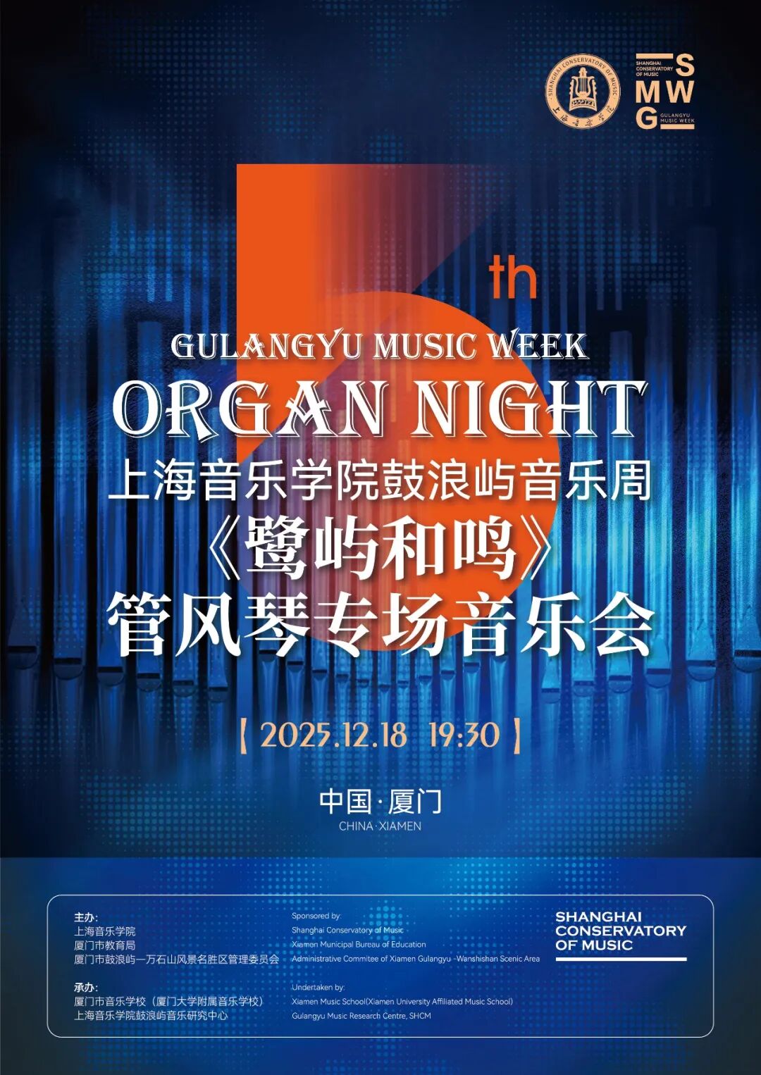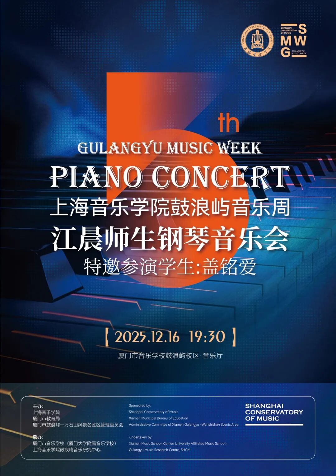 5场高品质师生音乐会将在厦门市音乐学校五通校区琴岛音乐厅、鼓浪屿校区音乐厅、鼓浪屿管风琴艺术中心奏响,生动践行“重视基础、严格教学、精于实践、善于总结”的上音优秀传统,这既是教学成果的集中检阅,更是高雅艺术惠民的美育实践。
