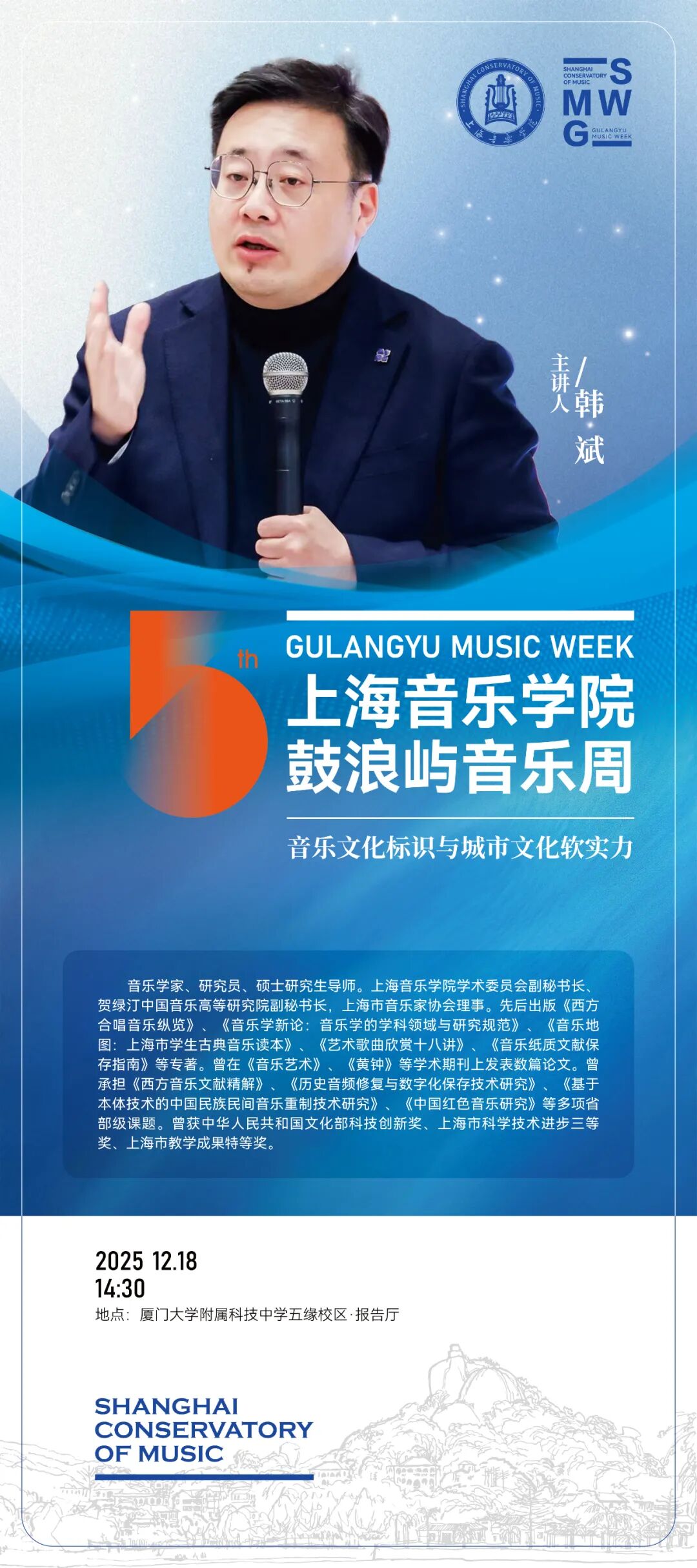 本届音乐周由上海音乐学院、厦门市教育局、厦门市鼓浪屿—万石山风景名胜区管理委员会联合主办,厦门市音乐学校、上海音乐学院鼓浪屿音乐研究中心共同承办,既是高校服务社会主义文化繁荣发展的责任担当,更是提升城市文化软实力的重要举措。本届音乐周在延续经典板块的同时,活动积极融入上音“交叉学科融合发展”新成果,拓展学术边界,凸显“双一流”高校的学科引领作用。