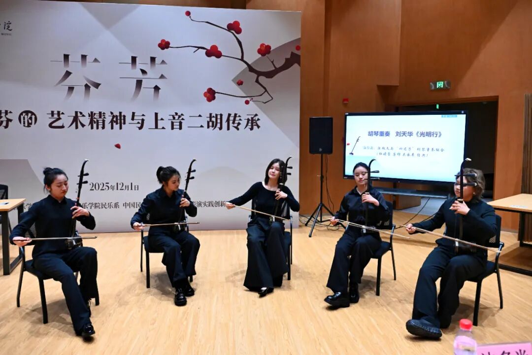 在研讨会接近尾声之际,陆轶文与“四君子”胡琴组合共同演奏刘天华的《光明行》,为学术交流画上句点。
