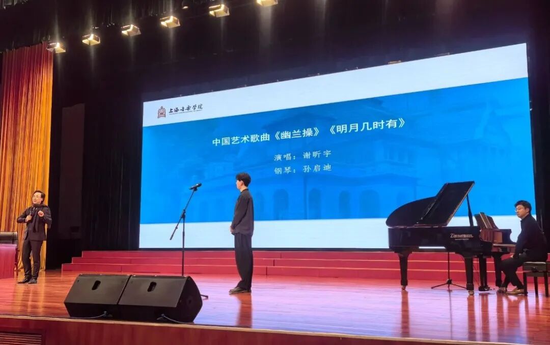 作为 “湘江大讲堂” 开办以来首位登台授课的歌唱家,廖昌永结合自身数十年艺术实践与教育研究经验,创新采用“理论讲授+现场表演”的形式,系统梳理了中国艺术歌曲的百年发展脉络,深入阐释其独特美学特质与鲜明时代价值。讲座中,他从1920年青主先生以苏轼《念奴娇・赤壁怀古》谱成《大江东去》、开启中国艺术歌曲的百年序幕说起,生动解读了从《教我如何不想他》《玫瑰三愿》到《幽兰操》等经典作品中“诗乐一体”的文化基因与 “关注人与社会” 的价值取向,来自上音声乐歌剧系青年教师张天洋、艺术辅导教师孙启迪和博士研究生谢昕宇演唱了中国艺术歌曲的经典作品《玫瑰三愿》《春思曲》《幽兰操》《明月几时有》,让现场听众深刻领略了中华审美风范与诗词文化精华。