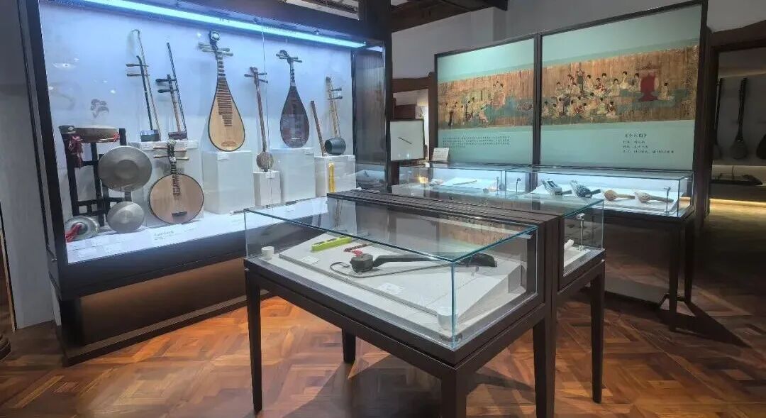 本次展览分为“乐史熠熠 古今相继”“弦歌越海”“制器作乐 传承古今”三大展厅。在“礼乐和鸣”板块,从象征权威秩序的曾侯乙编磬到通达天地、涵养德性的古琴,每件器物都与“礼”的文化精神血脉相连;“节庆共鸣”板块中,傣族象脚鼓、土家族打溜子锣、彝族神鼓等各族锣鼓乐器,共同描绘出“和而不同、共生共荣”的鲜活图景;“多元交响”板块则通过新疆十二木卡姆乐器与西南民族器乐的并置,展现了各民族音乐文化在交流互鉴中形成的“你中有我,我中有你”的文化联结。“弦歌越山河”专题展,呈现了刘英教授团队历经五年深耕的民族器乐研究,这也是上音2021年国家社科基金艺术学重大项目《中国少数民族器乐艺术研究》的重要成果展示。“制器作乐 传承古今”所呈现的乐器集群,是学校在百年发展历程中对“乐器本土化实践”与“传统器乐传承体系建构”领域探索的物质成果。
