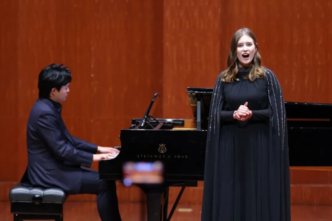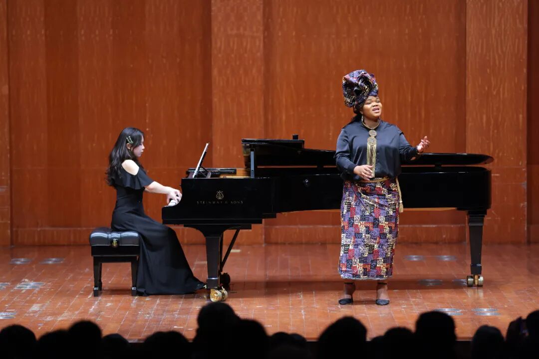 下半场,音乐会氛围持续升温。马来西亚学生演唱的《敢爱敢做》重新点燃全场热情。《第二二胡协奏曲〈西行〉》节奏明快、意境深远;《丝路掠影》《牧羊女》等作品以鲜明的民族特色,为舞台注入青春活力。莫桑比克学生带来的艺术歌曲《梧桐树》以醇厚声线勾勒梧桐挺立的风骨,歌声中蕴含家园之思与岁月积淀。《菊花台》在二胡、大提琴与钢琴的重新编配中,赋予经典流行旋律以室内乐的细腻质感,流转出现代与古典交汇的浓浓诗意。
