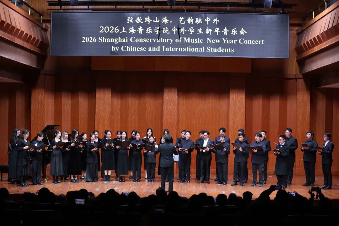由上海音乐学院主办、国际教育学院承办的“弦歌跨山海,艺韵融中外”——2026上海音乐学院中外学生新年音乐会日前在贺绿汀音乐厅圆满举行。来自同济大学、华东师范大学和上海大学等十几所高校的中外师生代表和市民朋友们欢聚一堂,共同迎接崭新的2026年。