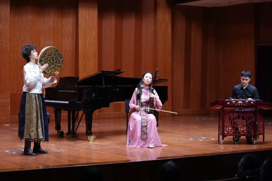 音乐会在气势恢宏的打击乐《云之南》中拉开帷幕,铿锵有力的节庆鼓点,瞬间点燃现场氛围。随后,一系列融合中外特色与经典韵味的曲目精彩上演。歌曲《槐花几时开》《阿扎尔的咏叹调》《别唱,美人》深情款款、直抵人心;马头琴与古筝合奏作品《贤后满都海》、中提琴独奏《春之歌》旋律优美、各具韵味。