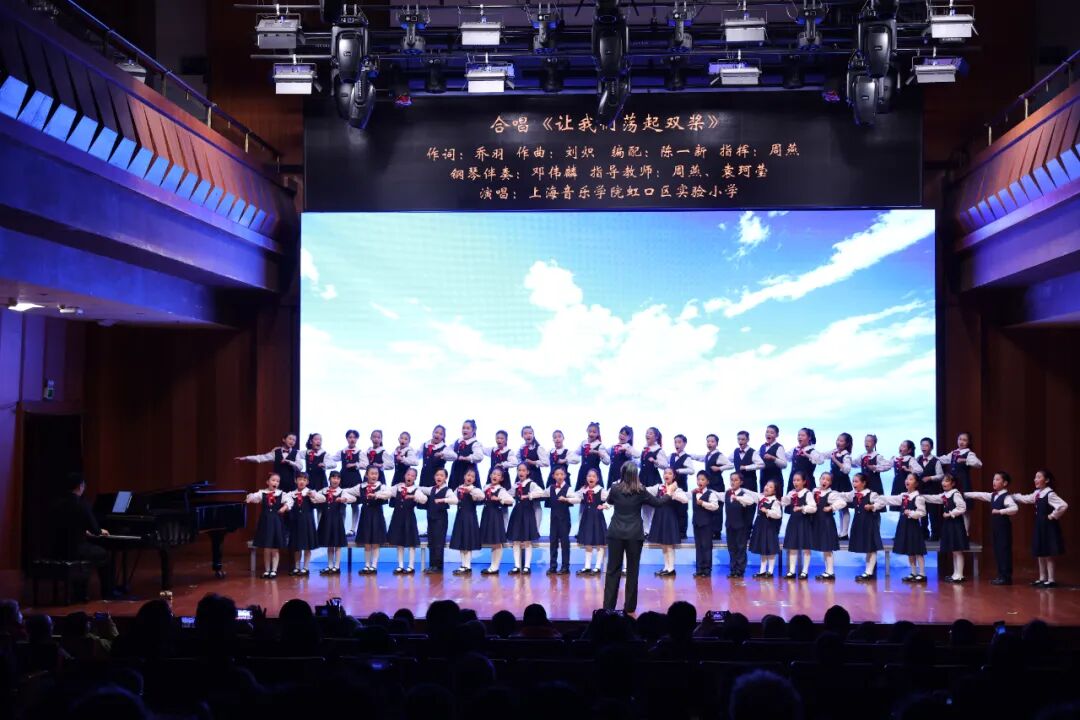 随后,多部由合作学校师生原创或改编的优秀作品依次亮相。上海音乐学院虹口区北虹高级中学原创歌曲《囡囡哼起的童谣》融入江南与海派风格,并由上音北虹音创班学生参与创作。上海音乐学院虹口区实验中学原创音乐剧《龙狮少年梦》片段,以鲜活的舞台表达展现中国优秀传统文化。终曲《象王行》由上海音乐学院实验学校古筝团呈现,呈现东方音乐的雅韵与神采。