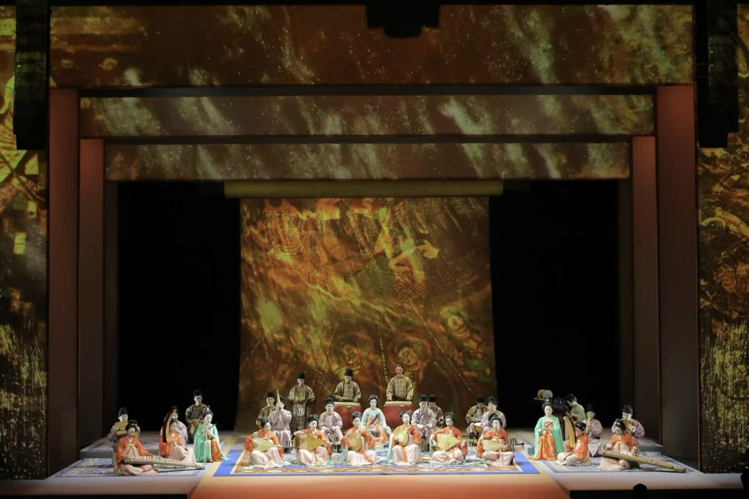 《国乐艺术剧场的数智赋能创新实践》项目依托上海音乐学院“教创演研一体化”人才培养模式,结合原创的艺术实践作品《丝路之乐·唐韵回响》《南韵·国色》,将课程教学与艺术实践紧密结合,形成“理实联动、创制一体”的教学模式。秉持“时尚包装经典,传统走入现代”的主旨,利用数智技术,结合跨界媒体艺术形式,以中华传统文化为根基,探索数字智能协同舞台创制与数字媒体艺术融合的音乐剧场新形式。