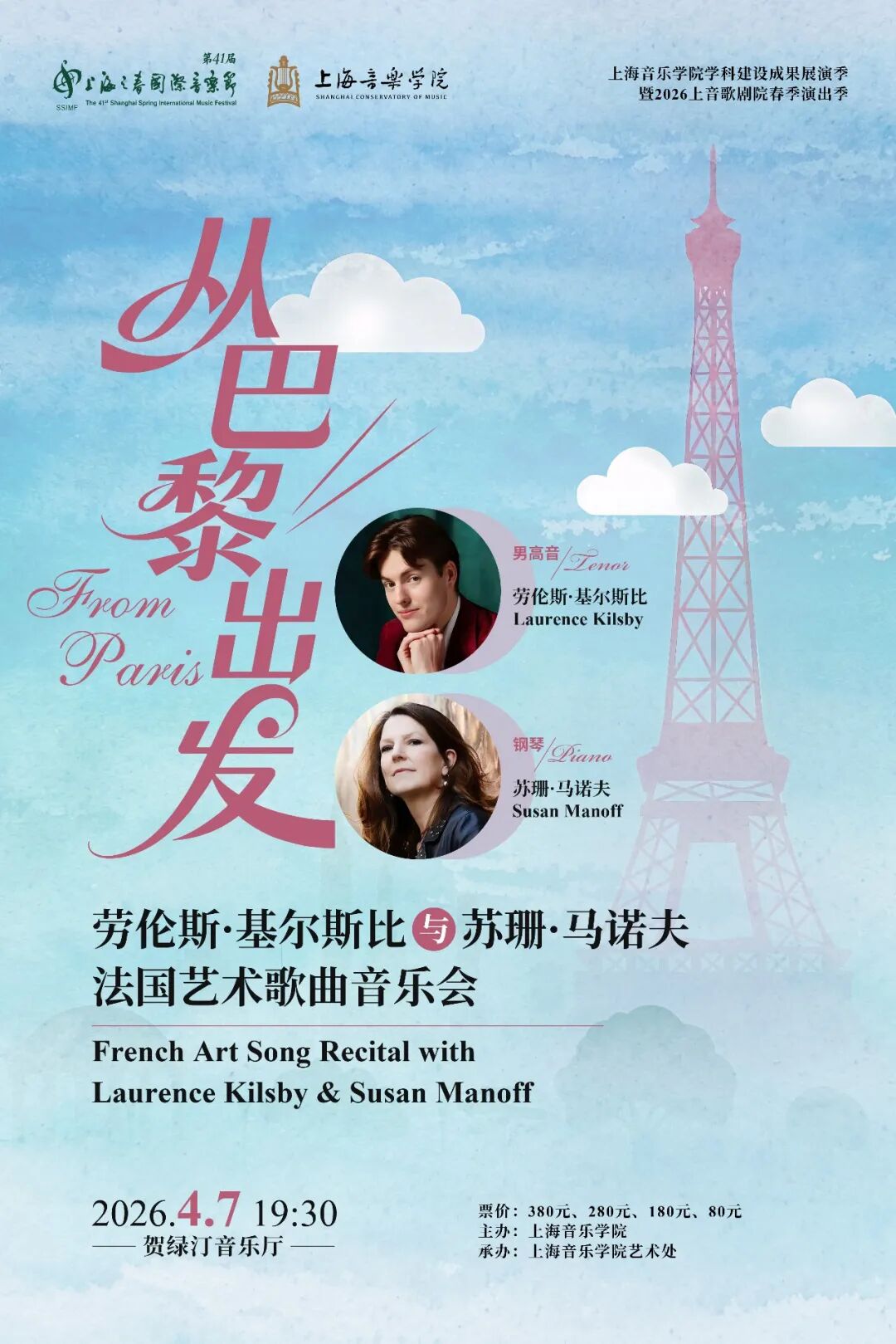 “大师与新秀”音乐会(4月5日)汇聚德国顶尖音乐家与上音国际音乐家比赛获奖选手;“从巴黎出发”法国艺术歌曲音乐会(4月7日)由法国古典乐界权威艺术家联袂献演,沉浸于浪漫意境。