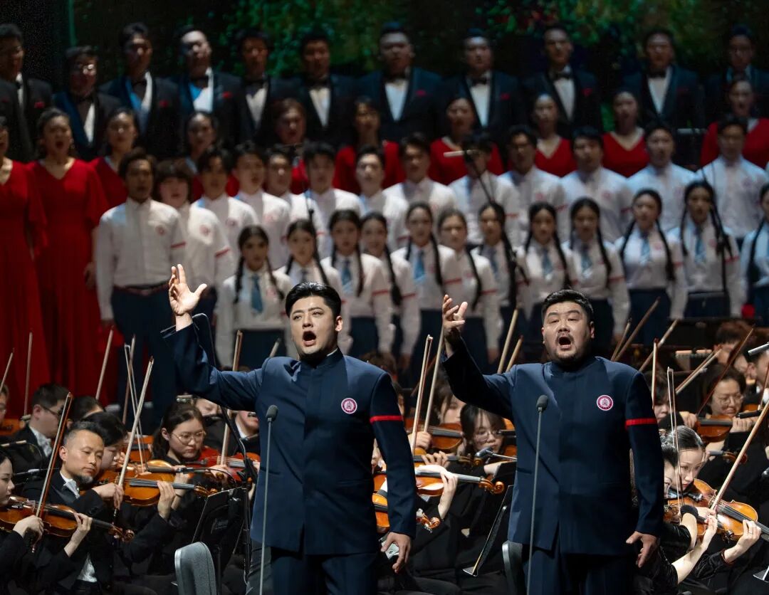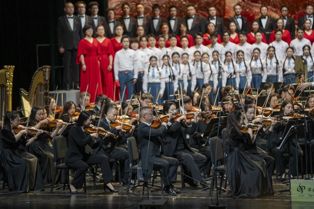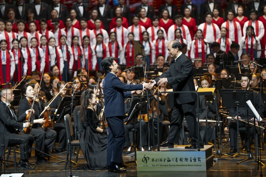 今晚,作为全市首场纪念红军长征胜利90周年的大型主题文艺演出,第41届上海之春国际音乐节开幕音乐会“永恒的征途”在北外滩友邦大剧院唱响。音乐会由上海音乐学院院长廖昌永领衔200多位上音师生,作曲指挥系教授张国勇执棒上海音乐学院交响乐团、上海音乐学院合唱团和上海爱乐乐团、上海歌剧院合唱团联袂呈现,演出团队还集结长征沿线优秀艺术家,以激昂乐音重温峥嵘岁月,以赤子之心赓续红色血脉。上音校领导班子全体成员集体观看演出。
