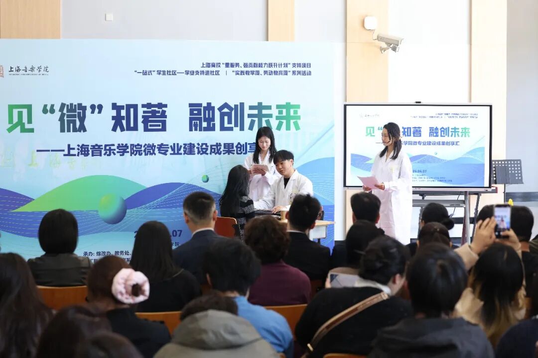 人才培养模式改革是深化新一轮教育综合改革、落实推进“立德树人”一号工程的核心内容。为实施《上海音乐学院深化综合改革方案(2025-2030年》,以“重服务、强贡献”为导向,4月7日,上音在零陵路、汾阳路两校区举办综改人才培养模式改革专项——本科微专业建设成果展示活动。本次活动集中展示了学校首轮微专业建设的阶段性成果,聚焦已开设并授课一学期的“音乐科创”与“音乐与健康”两个微专业,展现了上音在跨学科复合型人才培养上的创新探索,对未来拟开设的新一轮微专业进行展示,更好地推进“一站式”学生社区学业支持进社区工作。