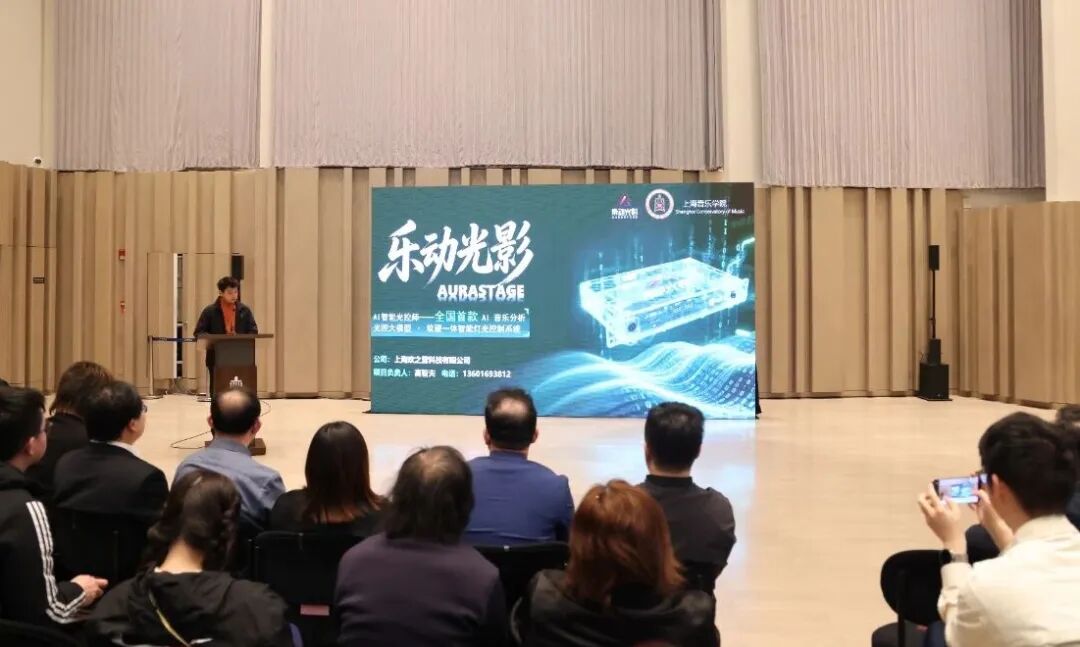 艺术管理系高哲夫代表团队展示《乐动光影智能视效》项目,依托 AI 智能光控大模型,推出全国首款软硬一体智能灯光控制系统,为演艺场景带来效率与视觉双重革新。