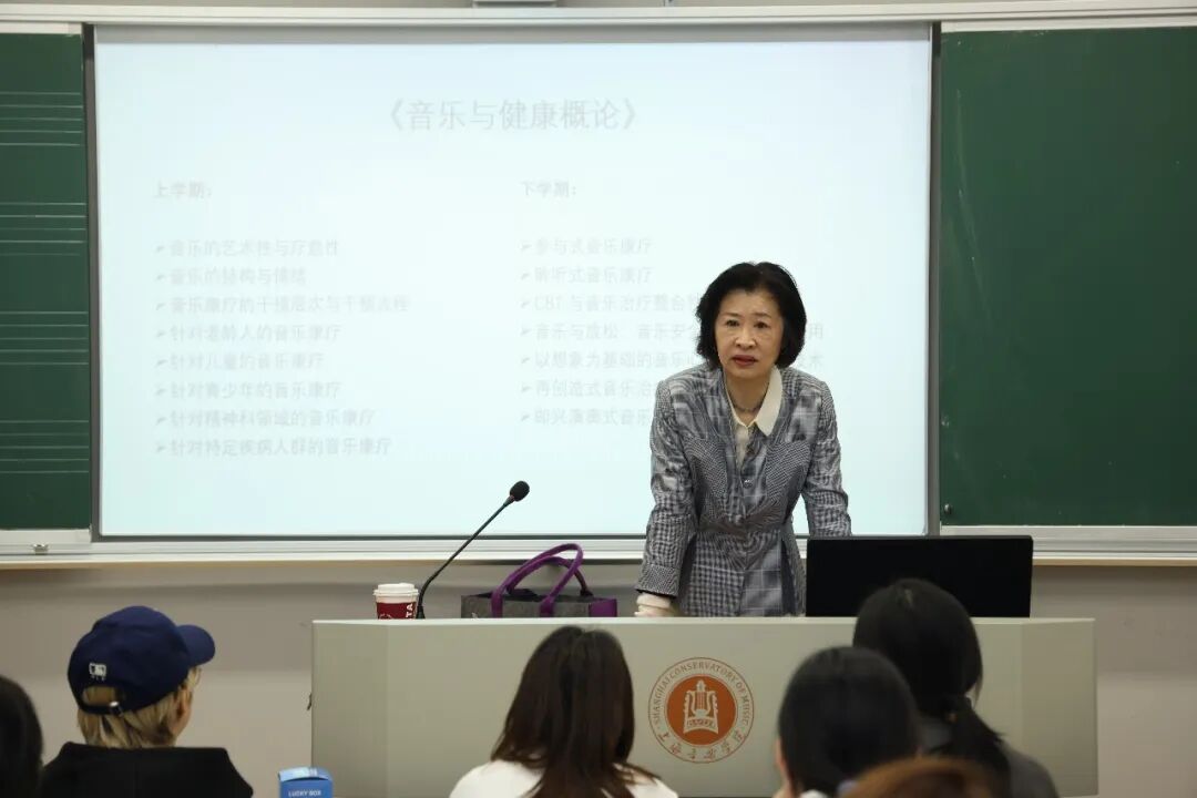 音乐教育系教授杨燕宜主讲《音乐与健康概论》,作为“音乐与健康”微专业核心导入课,系统讲授音乐在身心健康促进中的理论基础与应用路径。
